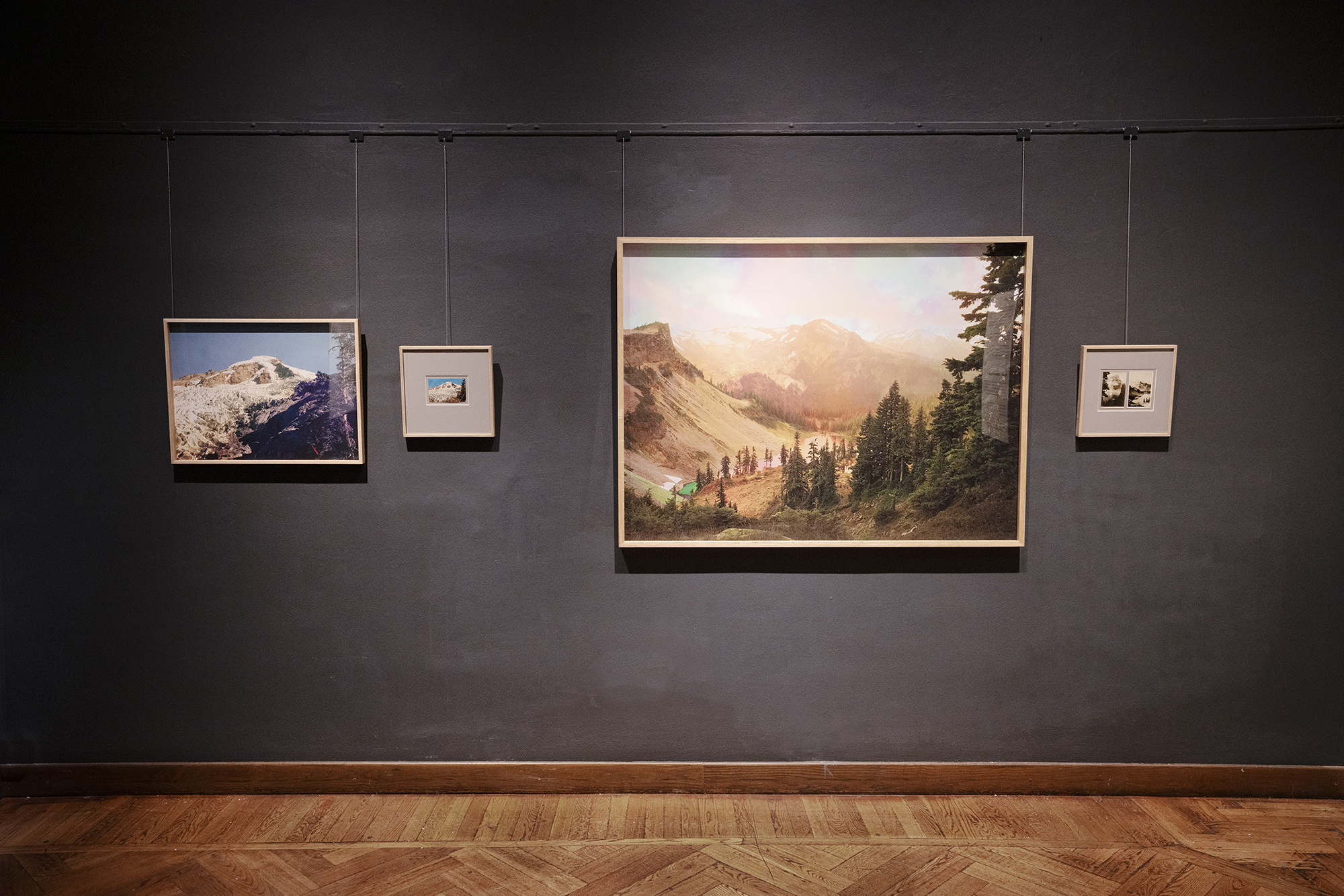 Tracing an unbroken line, the eye is guided from one sweeping landscape to the next without doubting their separateness in location and origin. Renate Aller intentionally pairs images for each installation, forming an immersive panorama showing the interconnectedness of distant environments, opening up conversations between the different (political) landscapes in which we live.