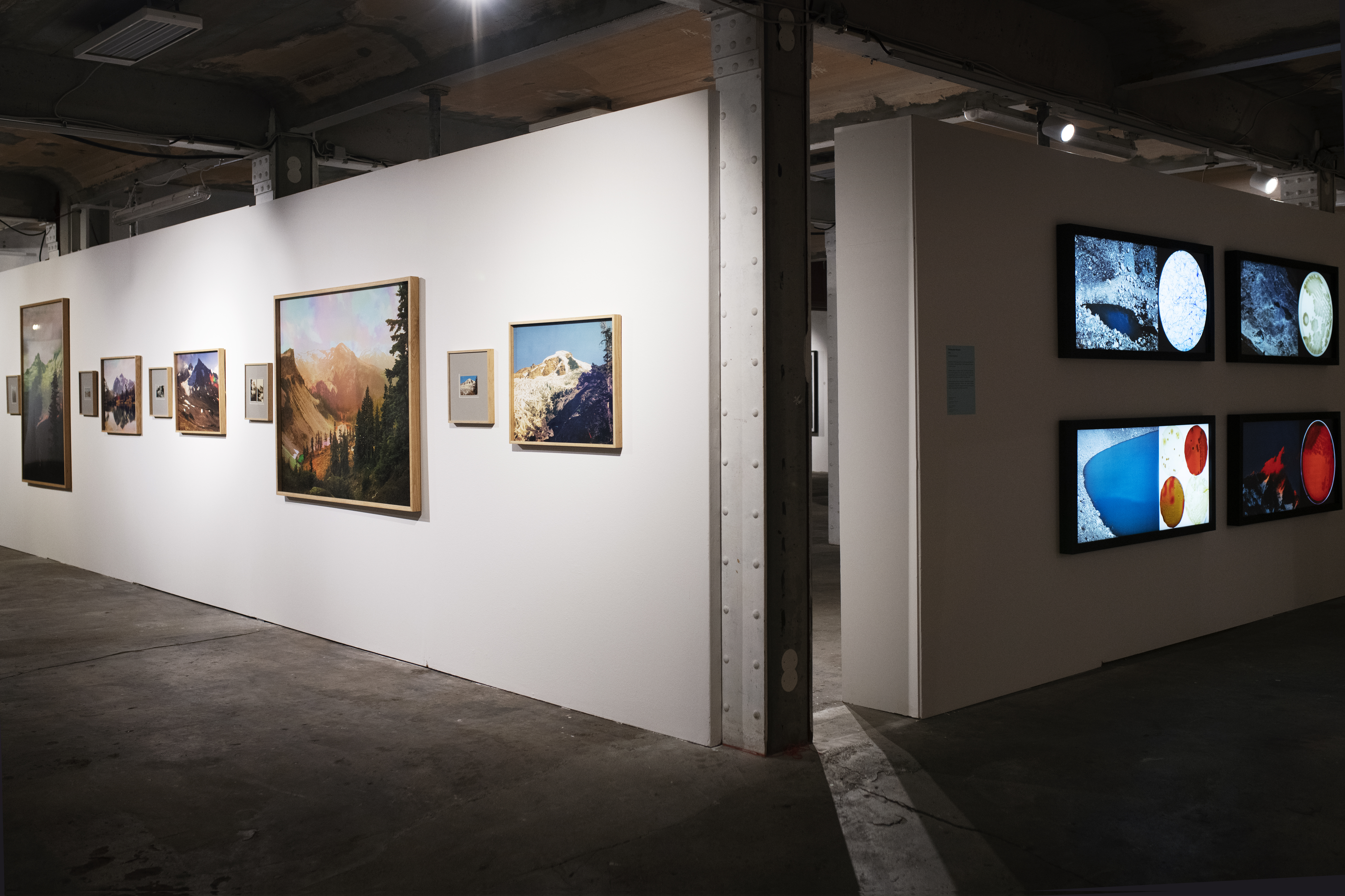 Christopher Parsons joined forces with a research team to study glaciers and permafrost in the Sagarmartha region of the Himalayas. Samples taken on location were cultured and analysed by a microbiologist in the UK. The bacteria reveal the microbiological dynamics and organisms in the glacier environment that are not visible to the naked eye. Parsons displays these microscopic elements alongside the Nepalese landscape, offering the viewer multiple perspectives of the life sustained by the mountains and water, underlining the need for preservation.