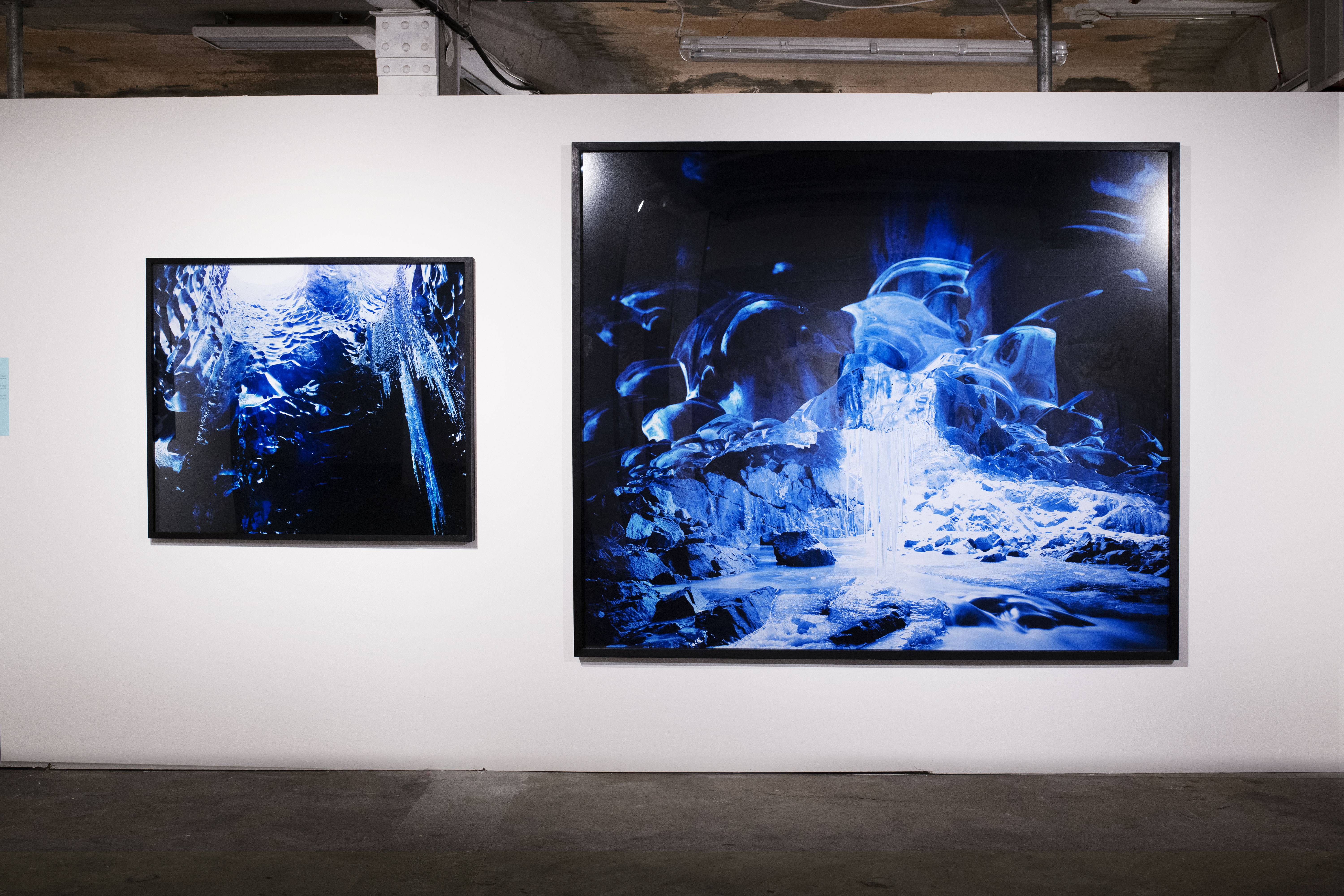 Conceptual documentary photographer Richard Mosse used a large-format plate-film camera to photograph the ice cave under the Vatnajökull glacier in Iceland. Glacier caves usually form when air enters where water flows underneath the ice, the warm air slowly creates melting and forms a cave from beneath. The dynamic process is becoming more unpredictable as the weather changes and cave access may become impossible in the future.