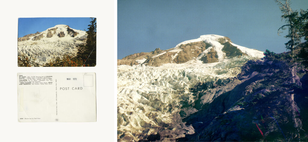 Peter Funch’s “The Imperfect Atlas” is a profound exploration of climate change, focusing on the Mt. Baker and Mt. Rainier regions. As a range of other Project Pressure artists, Funch uses photographic techniques to document the drastic changes these landscapes undergo due to human impact. His work integrates historical images with contemporary photography to create a compelling narrative about environmental transformation and the urgency of climate action.